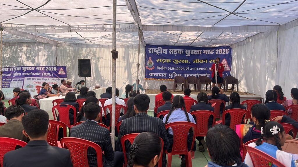 राष्ट्रीय सड़क सुरक्षा माह के बीसवें दिन आज दिनांक 20.01.26 को पुलिस अधीक्षक सुश्री अंकिता शर्मा के निर्देशन श्री पुष्पेन्द्र नायक अतिरिक्त पुलिस अधीक्षक राजनांदगांव के मार्गदर्शन में यातायात प्रभारी नवरतन कश्यप के नेतृत्व में यातायात कार्यालय में प्रातः 11ः00 से 14ः00 बजे तक वाद-विवाद प्रतियोगिता विषय- ‘‘दुर्घटना’’- व्यक्तियों की गलतियों के कारण होती है, न कि व्यवस्था के’’ का आयोजन किया गया।