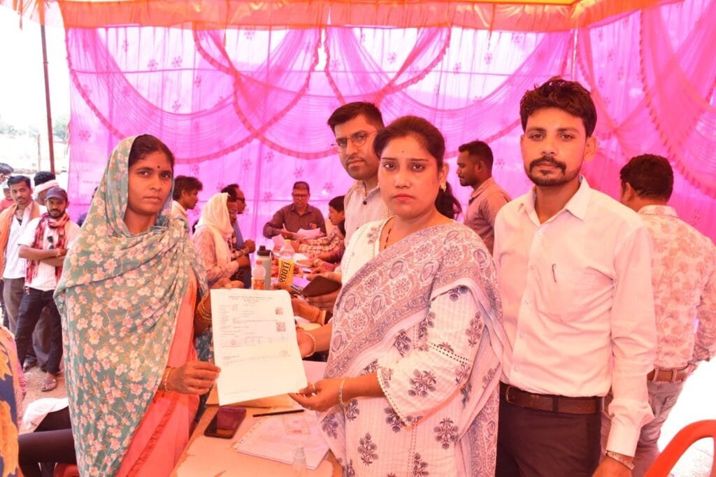 समाधान शिविर चारभांठा में श्रीमती चनबती को मिला तत्काल श्रमिक कार्ड