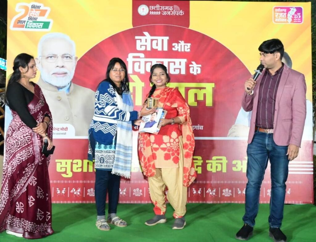 राजनांदगांव 26 दिसम्बर 2025। सरकार के 2 वर्ष पूर्ण होने के उपलक्ष्य में जनसंपर्क विभाग द्वारा राजनांदगांव शहर के रानी सागर स्थित चौपाटी में 2 साल निरंतर सेवा निरंतर विकास कार्यक्रम का आयोजन किया गया। कार्यक्रम उमंग, उत्साह एवं खुशनुमा माहौल में संपन्न हुआ। इस अवसर पर छत्तीसगढ़ी सांस्कृतिक कार्यक्रम के साथ ही विभिन्न रोचक गतिविधियों का आयोजन किया गया। इस दौरान छत्तीसगढ़ी संस्कृति पर आधारित प्रश्र पूछे गए। जिसमें शहरवासियों की सक्रिय सहभागिता रही। प्रधानमंत्री सूर्यघर मुफ्त बिजली योजना के हितग्राही श्री हेमंत पाण्डे ने अपने अनुभव साझा करते हुए बताया कि इस योजना से घर में सोलर पैनल लगाने से बिजली बिल शून्य हो गया है। वहीं अतिरिक्त बिजली का भी उत्पादन हो रहा है।