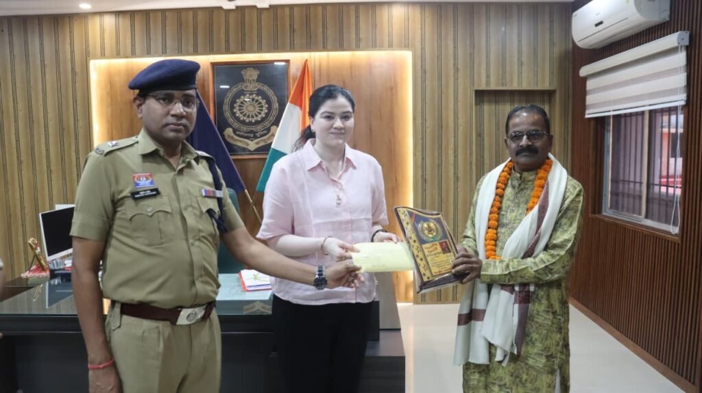 राजनांदगांव। पुलिस अधीक्षक कार्यालय में पदस्थ सहायक उपनिरीक्षक (स.उ.नि.) नरेन्द्र तिवारी के सेवानिवृत्त होने पर सोमवार को पुलिस अधीक्षक कार्यालय में सम्मान समारोह आयोजित किया गया। इस अवसर पर पुलिस अधीक्षक सुश्री अंकिता शर्मा ने शाल, श्रीफल एवं स्मृति-चिन्ह भेंट कर उन्हें सम्मानपूर्वक विदाई दी और उनके दीर्घ, उत्कृष्ट एवं अनुकरणीय सेवाकाल की सराहना करते हुए उज्ज्वल भविष्य की कामना की।