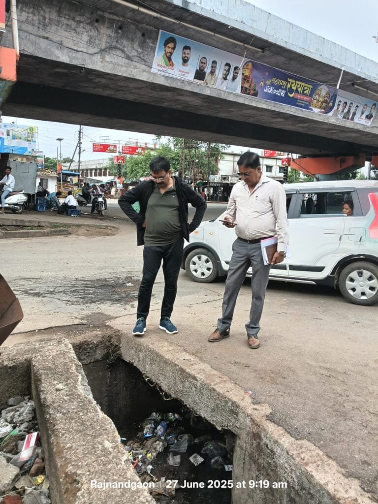 राजनांदगांव 27 जून। साफ सफाई में गुणात्तम सुधार लाने तथा शहर में चल रहे निर्माण कार्यो को समय सीमा में पूर्ण कराने नगर निगम आयुक्त श्री अतुल विश्वकर्मा प्रतिदिन सुबह वार्डो में जाकर जायजा ले रहे है। आज उनके द्वारा जी.ई.रोड, महावीर चौक, एंव कौरिनभाठा में साफ सफाई तथा निर्माण कार्य का निरीक्षण किया गया। उन्हांेने टांका घर जाकर विद्युत, मोटर एवं पेयजल संबंधी कार्य करने वाले कर्मचारियो की जानकारी लिए।