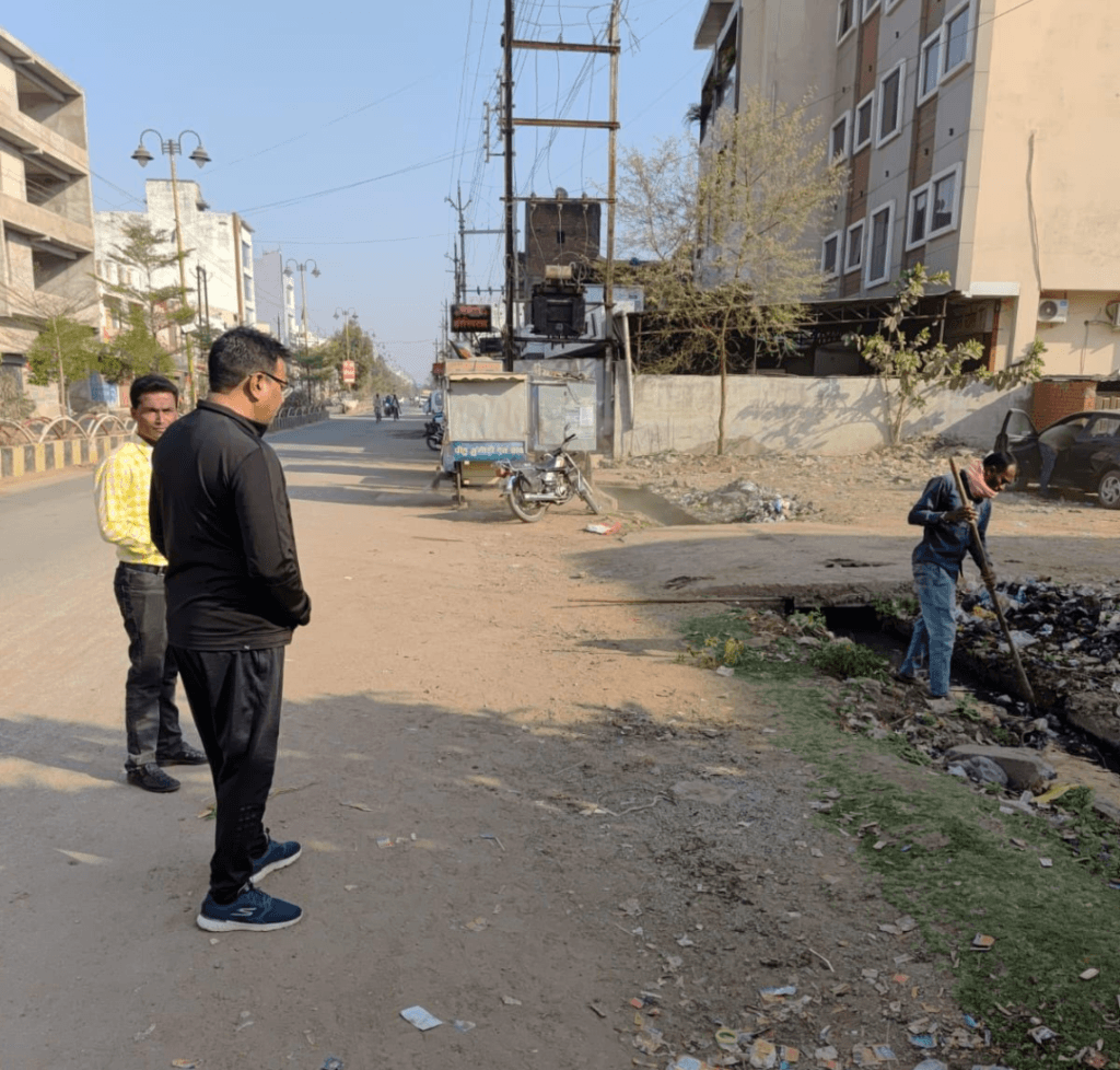 आज आयुक्त श्री विश्वकर्मा सुबह सफाई निरीक्षण के दौरान कौरिनभाठा मेन रोड, महामाया चौक में साफ सफाई देख सफाई कर्मियों से चर्चा कर कहा कि मेन रोड के डिवाईडर के किनारे झाडू लगा कचरा उठावे, डिवाईडर के उपर की कटिली झाडिया काट कचरा उठावे। उन्होंने कौरिनभाठा रोड के होटल में दबिश देकर साफ सफाई रखने, कचरा अलग अलग डस्टबिन में रख स्वच्छता दीदीयों को देने समझाईस दिये। उन्होंने होटल संचालक से कहा कि कचरा नाली में न डाले, अपने खाद्य पदार्थ ढककर रखे। स्वच्छता में सहयोग करे और होटल में आने वाले लोगों को भी साफ सफाई रखने समझाईस देवे।