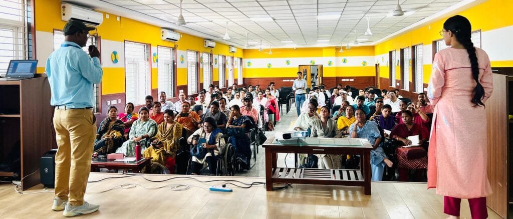 नवाचारी कार्यक्रम में सीआरसी राजनंदगांव के पुनर्वास प्रोफेशनल द्वारा साईन लैंग्वेज इंटरप्रेटर के साथ सिजोफिनिया डिसऑर्डर के बारे में जानकारी देते हुए सीआरसी व सीडीईआईसी में होने वाली सभी थेरेप्यूटिक सर्विस स्पीच थेरेपी, हियरिंग विभाग, मनोविज्ञान विभाग,
