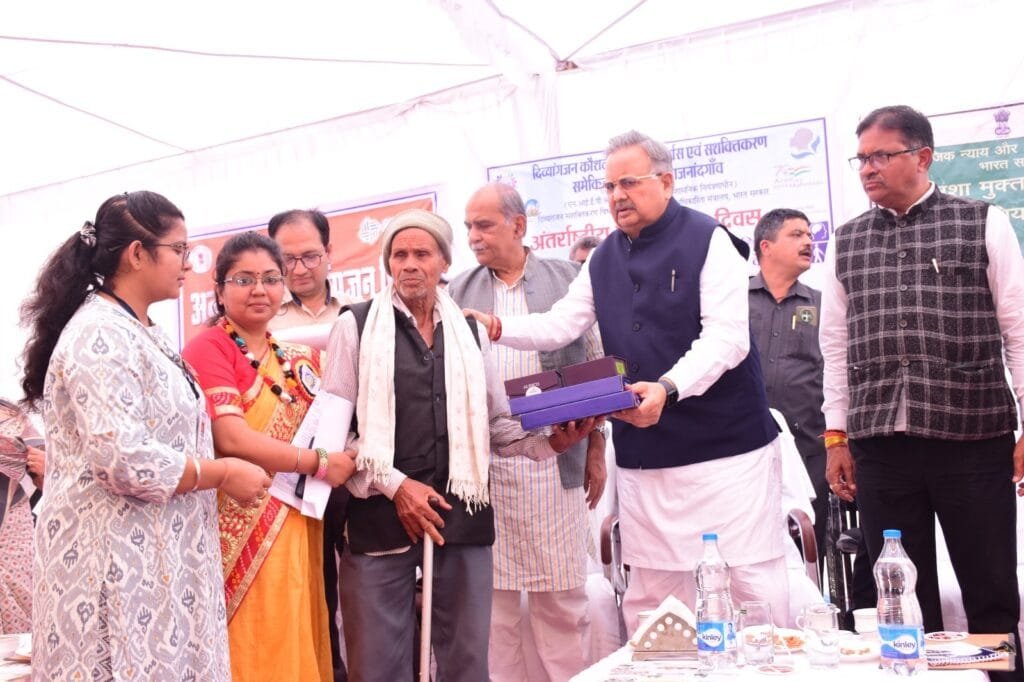 विधानसभा अध्यक्ष डॉ. रमन सिंह एवं अन्य अतिथियों की उपस्थिति में दिव्यांगजनों को सहायक उपकरण एवं सामग्री का वितरण किया गया। इस अवसर पर 1 लाख 80 हजार रूपए की लागत से 4 दिव्यांगजनों को मोटराईज्ड ट्रायसाइकिल, 90 हजार रूपए की लागत से 8 श्रवण बाधितों को श्रवण यंत्र, 16 हजार रूपए की लागत से 2 दिव्यांगजनों को व्हील चेयर, 3500 रूपए की लागत से 7 दिव्यांगजनों को लिफ्ट बेल्ट, 699 रूपए की लागत से 1 दिव्यांग को वाकर, 11 हजार 330 रूपए की लागत से 15 दिव्यांगजनों को नी ब्रेस, 6 हजार 144 रूपए की लागत से 8 दिव्यांजनों को ट्रिपाड, 500 रूपए की लागत से 2 दिव्यांगजनों को सर्विकल प्रदान किया गया।