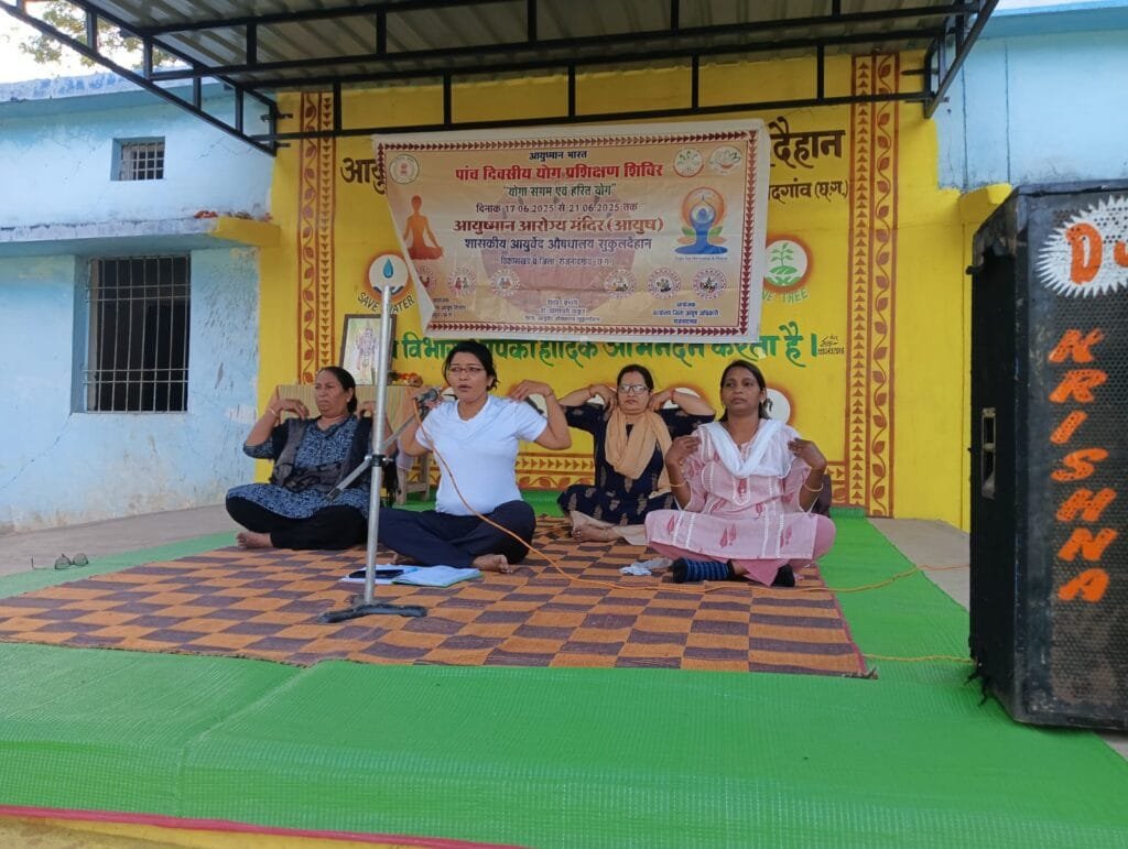 राजनांदगांव। संचालनालय आयुर्वेद योग एवं प्राकृतिक चिकित्सा यूनानी सि‌द्ध एवं होम्योपैथी (आयुष) छत्तीसगढ़ राय पुर के निर्देशन एवं राष्ट्रीय ग्रामीण स्वात्यय मिशन के योजनानुसार एव जिला आयुष अधिकारी शिल्पा मिश्रा  राजनांदगांव के कुशल मार्गदर्शन में आयुषमान आरोग्य मंदिर सुकुल दैहान में 5 दिवसीय योग शिविर का आयोजन किया गया। जिनका समापन अंतराष्ट्रीय योग दिवस के अवसर पर किया गया।