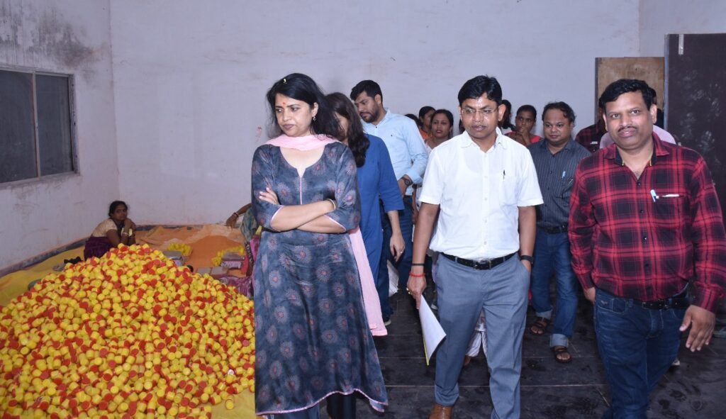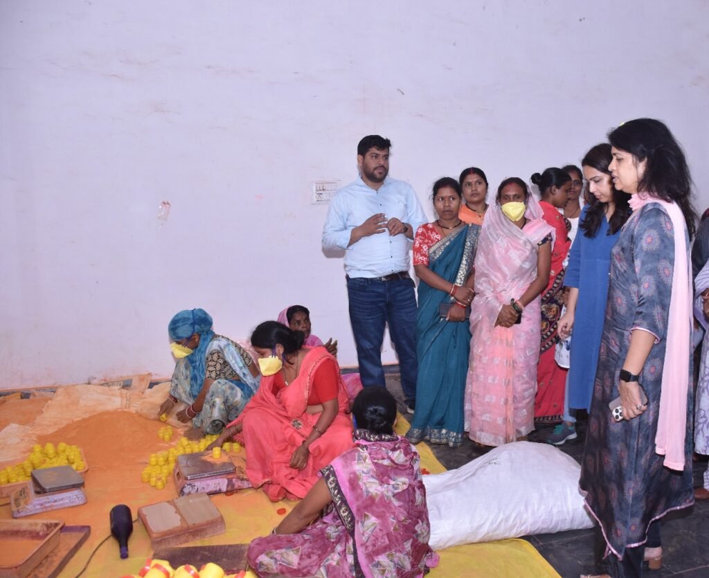 प्रमुख सचिव पंचायत एवं ग्रामीण विकास विभाग श्रीमती निहारिका बारिक सिंह राजनांदगांव विकासखंड के ग्राम अंजोरा में मल्टीयूटिलीटी सेंटर में महिलाओं द्वारा बनाए जा रहे हर्बल गुलाल, गोपीगुरू चंदन, सिंदूर, रोली, कुमकुम निर्माण एवं पैकेजिंग के कार्य का जायजा लिया। उन्होने यहां किए जा रहे आजीविका मूलक कार्यों की सराहना की। जिला पंचायत सीईओ ने बताया कि श्री गणेशा हर्बल गुलाल प्राईवेट लिमिटेड के साथ अनुबंध के आधार पर 16 समूह एवं 75 महिलाएं कार्य कर रही है।