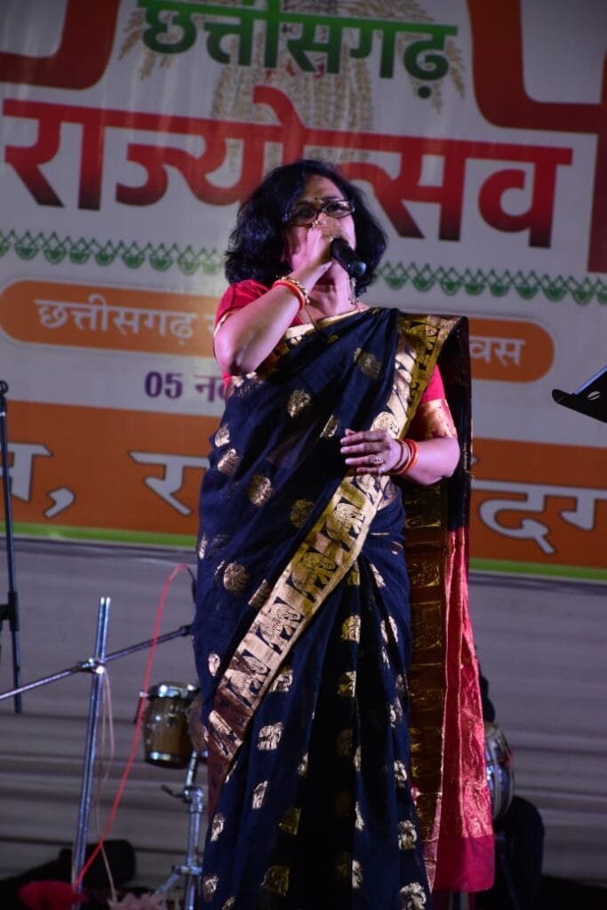 जैसे भजनों से शाम सुवासित हुई। वहीं बॉलीवुड की प्रख्यात प्लेबैक सिंगर ऐश्वर्य पंडित ने बड़े अच्छे लगते है, ये धरती, ये नदियां…, ये दिल कही लगता नहीं हम क्या करें…, पत्ता-पत्ता, बूटा-बूटा… जैसे हिन्दी फिल्मों पुराने मधुर गीतों से श्रोताओं को मुग्ध किया। संगीत शिल्पी श्रीमती बाबी मंडल द्वारा एक मीरा एक राधा…, अजीब दास्तां… जैसे गीतों की मोहक प्रस्तुति दी। श्री शरद श्रीवास्तव एवं टीम ने अपने गीतों से श्रोताओं का दिल जीत लिया। विजेता शर्मा ने लक्ष्मण मसतुरिया के गीत मोर संग चलव रे… छूकर मेरे मन को… एवं कोरा कागज मन मेरा… जैसे गीत सुनाएं। वहीं कृति बख्शी ने गुंजी सी है, सारी सदा..