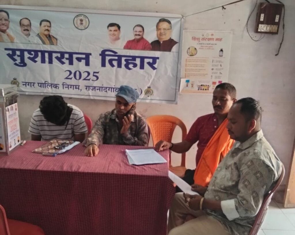 राजनांदगांव। जनमानस की समस्याओं का समाधान करने, शासन की योजनाओं का लाभ देने तथा जनता से सीधे संवाद करने छत्तीसगढ़ शासन की पहल सुशासन तिहार 2025 का अच्छा प्रतिसाद मिल रहा है और प्रथम चरण में समस्या संबंधी आवेदन देने के लिये वार्डों में आयोजित शिविर में वार्डवासी उत्साह से पहुुंच रहे हैं तथा अपनी समस्या व मांग के संबंध में आवेदन जमा कर रहे हैं।