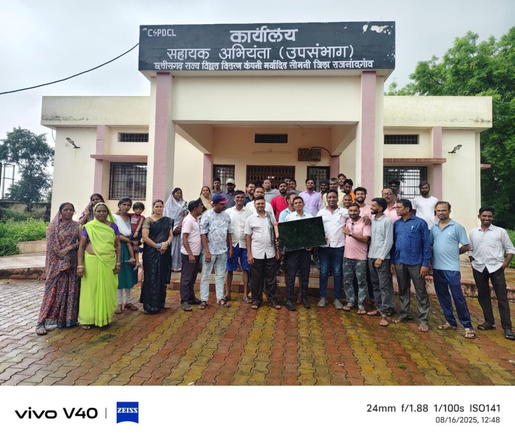 राजनांदगांव।छत्तीसगढ़ राज्य विद्युत वितरण कंपनी मर्यादित सोमनी कार्यालय सहायक अभियंता उप संभाग आज जनपद पंचायत सदस्य मोहनीश धनकर के नेतृत्व में क्षेत्रवासियों ने सोमनी विद्युत केंद्र पहुंचकर बिजली की समस्या को लेकर पहुंचे लेकिन वहां पहुंचने पर देखते हैं कि कार्यालय में ताला लगा हुआ था तत्काल जे के खोबरागड़े को फोन किया तो वह सोमनी पुलिस बल दल के साथ सोमनी विद्युत केंद्र पहुंचा। क्षेत्र वासियों ने जे ई को अपनी समस्याओं से अवगत कराया।क्षेत्रवासियों ने बताया कि लो वोल्टेज के कारण और बार-बार बिजली गुल होने के कारण क्षेत्र के लोगों में भारी आक्रोशित नजर आए और विद्युत केंद्र सोमानी के खिलाफ जमकर नारे बाजी भी लगाई। उन्होंने कहा की इसी तरह बार-बार बिजली गुल होने के कारण क्षेत्र वासियों को भारी समस्याओं का सामना करना पड़ रहा है घर के बच्चे बुजुर्ग महिलाओं, किसानो को भारी समस्याओ का सामना कर रहा है रात-रात भर लाइट बंद रहती है और कभी भी लाइट को बंद कर दी जाती है क्षेत्र के एक व्यक्ति अपना एलईडी टीवी लेकर भी साथ में पहुंचा था उन्होंने बताया कि लो वोल्टेज के कारण और बार-बार लाइट गुल होने के कारण उसकी टीवी उड़ चुका है। इसी तरह से घर के अन्य सामान इलेक्ट्रॉनिक सामान को भी नुकसान पहुंच रहा है. बार-बार बिजली गुल के कारण क्षेत्र के जनता में भारी आक्रोशित है।