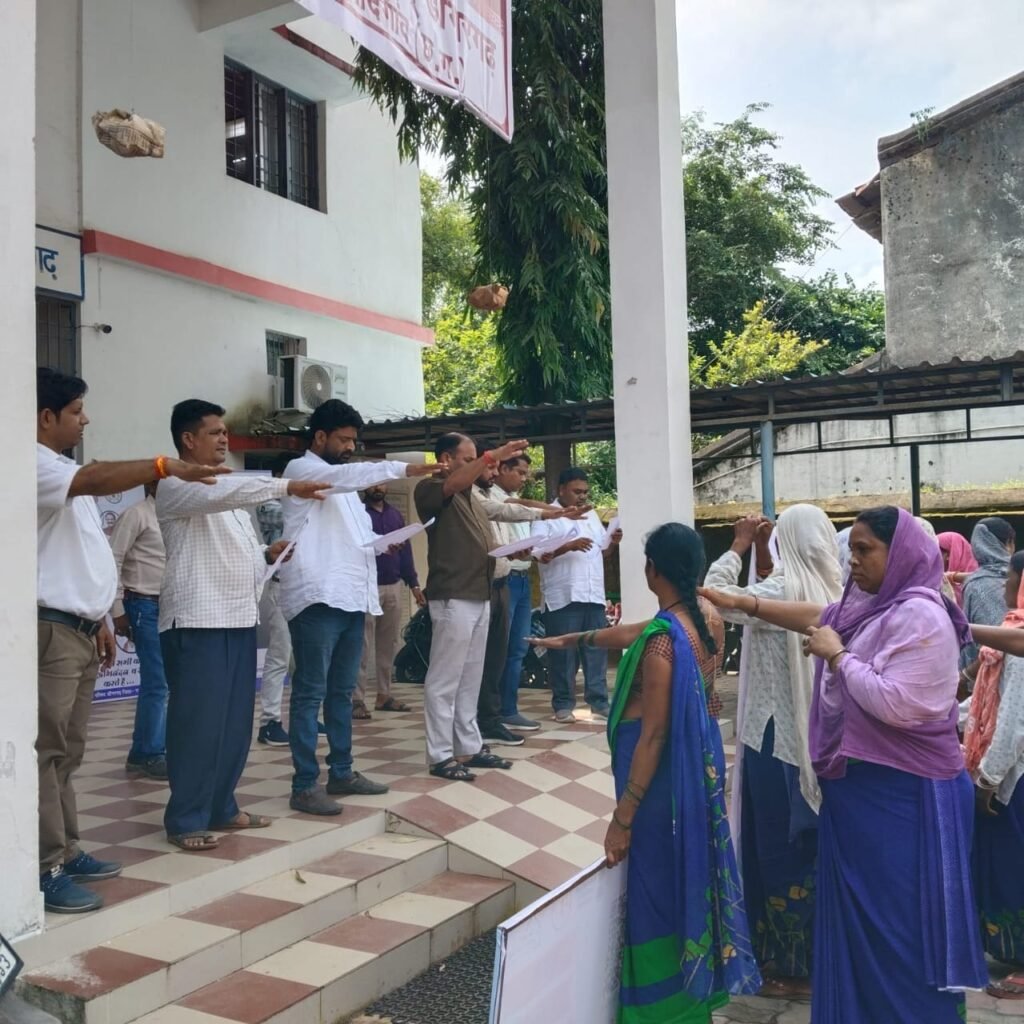 बतादे कीवहात्मा गांधी ने गुलामी के जंजीरों को तोड़कर मां भारती को आजाद कराया ।अब हमारा कर्तव्य है की गंदगी को दूर करके भारत माता की सेवा करे। अध्यक्ष व उपाध्यक्ष ने शपथ दिलाते समय
