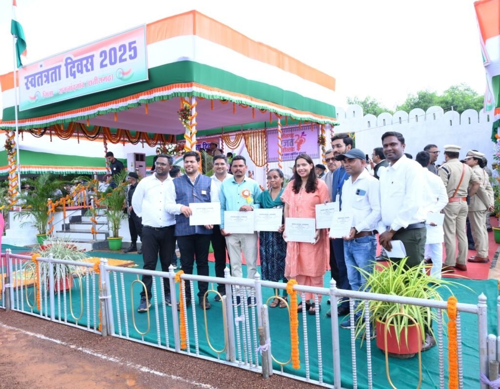 राजनांदगांव 16 अगस्त 2025। स्वतंत्रता दिवस के अवसर पर विधानसभा अध्यक्ष डॉ. रमन सिंह ने शौर्य परेड मैदान पुलिस प्रशिक्षण विद्यालय राजनांदगांव में आयोजित जिला स्तरीय मुख्य समारोह में पंचायत एवं ग्रामीण विकास विभाग के विभिन्न योजनाओं एवं कार्यक्रमों, जल संरक्षण एवं संवर्धन तथा नवाचार कार्यक्रमों में महती भूमिका निभाने एवं उल्लेखनीय कार्य के लिए मुख्य कार्यपालन अधिकारी जिला पंचायत सुश्री सुरूचि सिंह को प्रशस्ति-पत्र प्रदान कर सम्मानित किया। इस अवसर पर जिला पंचायत के एपीओ श्री सोमनाथ साहू एवं श्री फैज मेमन, पीपीआईए फेलो श्री अमित परिहार, सहायक ग्रेड-तीन सुश्री पुष्पा ध्रुवशी एवं ग्राम पंचायत बरगा के सरपंच को भी उत्कृष्ट कार्यों के लिए प्रशस्ति-पत्र प्रदान कर सम्मानित किया।