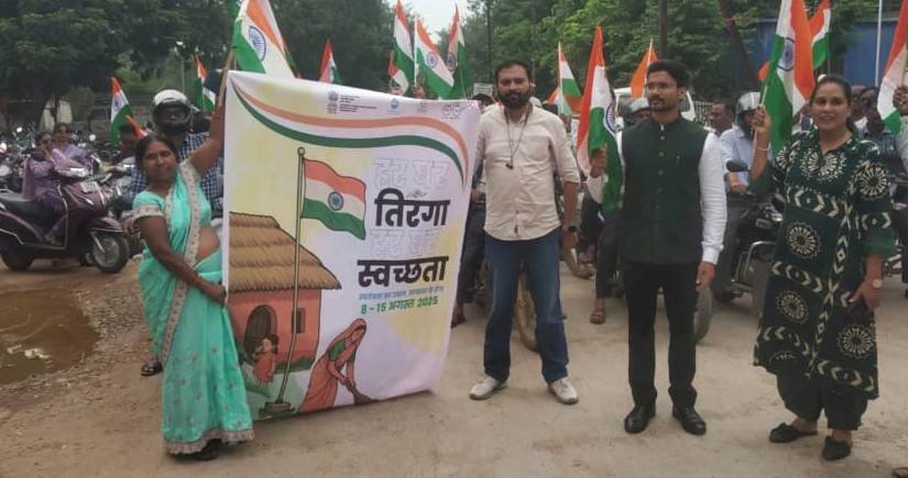 राजनांदगांव 08 अगस्त 2025। हर घर तिरंगा, हर घर स्वच्छता : स्वतंत्रता का उत्सव, स्वच्छता के संग थीम के तहत जनपद पंचायत डोंगरगढ़ में स्वच्छता शपथ ली गई। इसके साथ ही स्वतंत्रता दिवस के अवसर पर राष्ट्रध्वज के प्रति सम्मान में नागरिकों को राष्ट्रीय ध्वज अपने घर मे फहराने के लिए प्रेरित करने तथा आमजनों में देशभक्ति की भावना विकसित करने के लिए तिरंगा बाईक रैली निकालकर जागरूक किया गया।