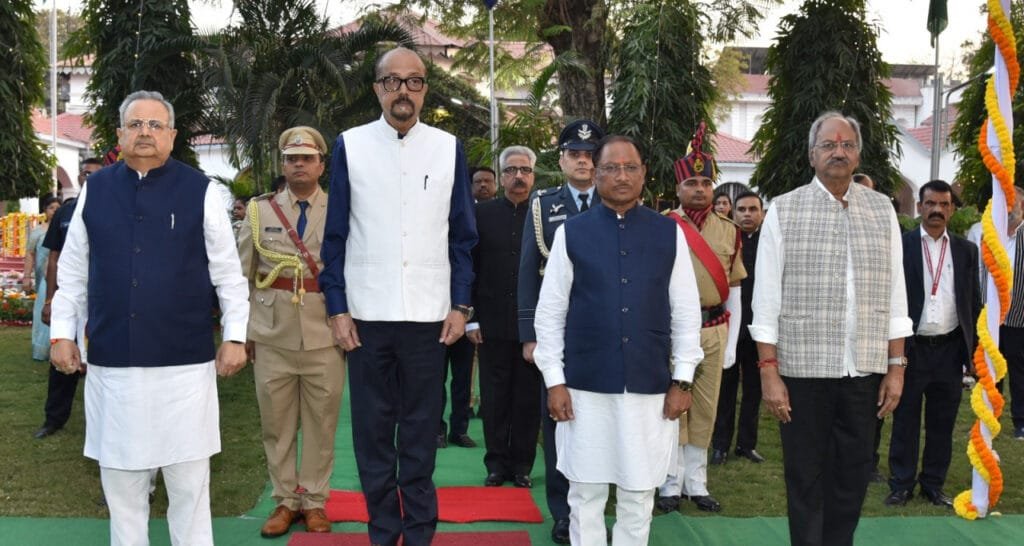 रायपुर, 26 जनवरी 2025 गणतंत्र दिवस के अवसर पर शाम यहां राजभवन में स्वागत समारोह का आयोजन किया गया। राज्यपाल श्री रमेन डेका ने सभी अतिथियों को गणतंत्र दिवस की हार्दिक शुभकामनाएं दी। समारोह में मुख्यमंत्री श्री विष्णुदेव साय ने राज्यपाल को पुष्पगुच्छ भेंटकर गणतंत्र दिवस की बधाई एवं शुभकामनाएं दी। उप मुख्यमंत्री श्री अरूण साव, विधानसभा अध्यक्ष डॉ. रमन सिंह, सांसद रायपुर श्री बृजमोहन अग्रवाल ने भी राज्यपाल श्री डेका को गणतंत्र दिवस की हार्दिक शुभकामनाएं दी। समारोह में जनप्रतिनिधिगण, पद्मश्री पुरस्कृत, राज्य शासन के वरिष्ठ अधिकारी, सेना एवं पुलिस के अधिकारी, राष्ट्रपति पदक से अलंकृत पुलिस अधिकारी, विभिन्न विश्वविद्यालयों के कुलपतिगण, राज्य वीरता पुरस्कार प्राप्त बच्चे, राज्य के उत्कृष्ट खिलाड़ी, गणमान्य नागरिक एवं मीडिया के प्रतिनिधि उपस्थित थे। राज्यपाल श्री डेका को सभी ने गणतंत्र दिवस की हार्दिक शुभकामनाएं दी।