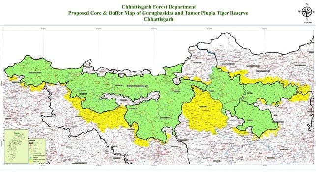 उल्लेखनीय है कि केंद्रीय पर्यावरण, वन एवं जलवायु परिवर्तन मंत्री श्री भूपेंद्र यादव ने छत्तीसगढ़ के गुरु घासीदास-तमोर पिंगला टाइगर रिजर्व को देश के 56वें टाइगर रिजर्व के रूप में अधिसूचित किए जाने की जानकारी राष्ट्र को दी है। उन्होंने कहा कि भारत बाघ संरक्षण में नए मील के पत्थर स्थापित कर रहा है, इसी क्रम में हमने छत्तीसगढ़ के गुरु घासीदास-तमोर पिंगला को 56वें टाइगर रिजर्व के रूप में अधिसूचित किया है। गुरु घासीदास-तमोर पिंगला टाइगर रिजर्व 2,829 वर्ग किलोमीटर में फैला हुआ है।