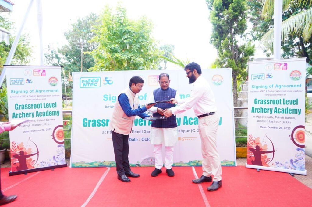 रायपुर : जशपुर जिले के सन्ना पंडरापाठ में तीरंदाजी अकादमी स्थापित करने हेतु एनटीपीसी के साथ हुआ एग्रीमेंट…