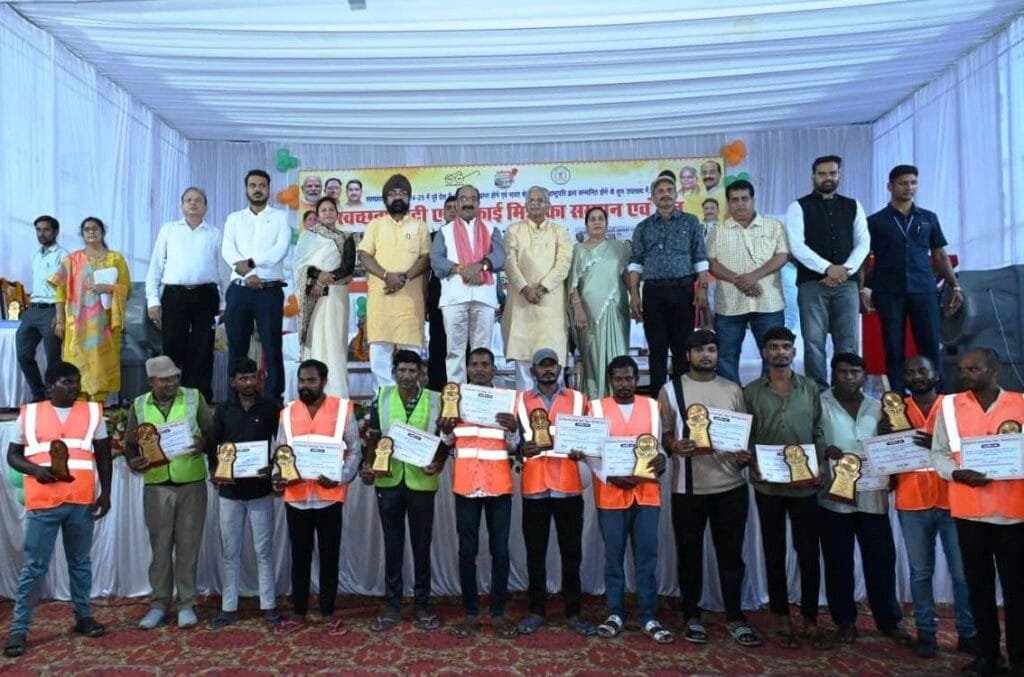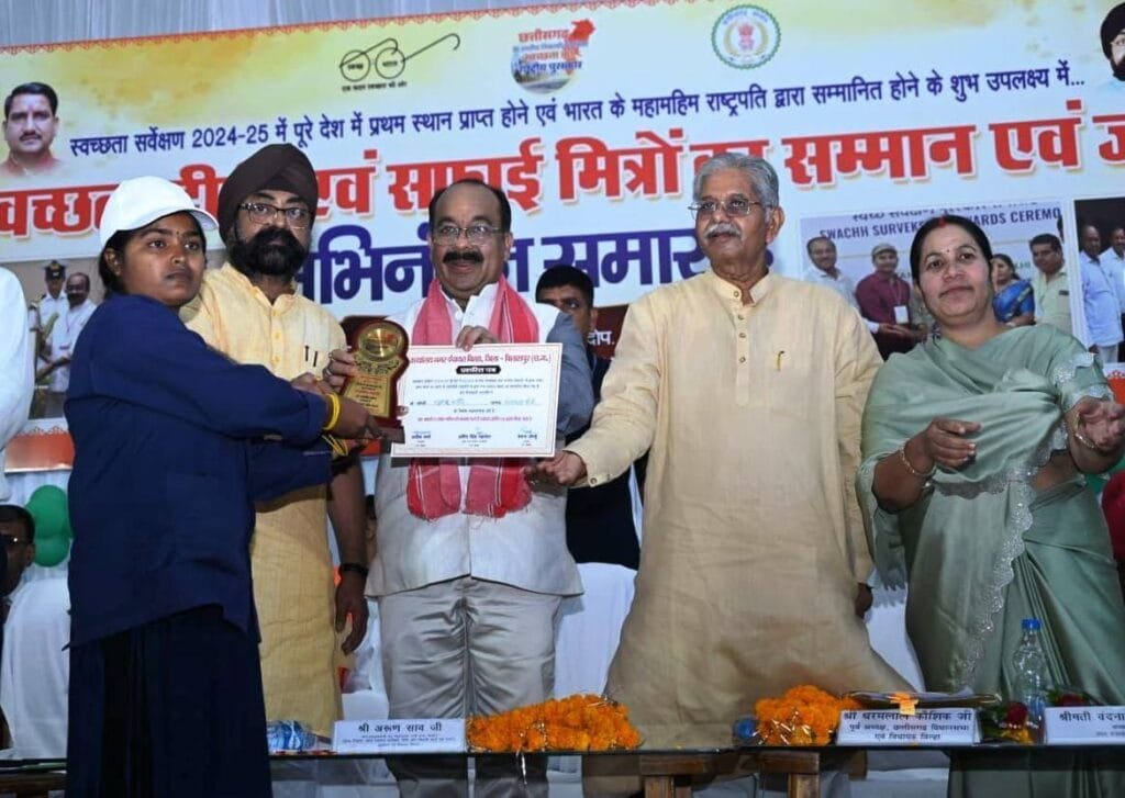 बिल्हा को देश का सबसे स्वच्छ शहर बनाने वाले स्वच्छता दीदियों और सफाई कर्मियों को उप मुख्यमंत्री श्री अरुण साव ने किया सम्मानित