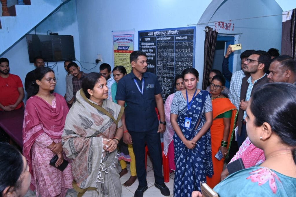 मंत्री श्रीमती राजवाड़े ने बनियागांव स्थित नशा मुक्ति केंद्र में भर्ती पीड़ितों से मुलाकात की और नशे से होने वाले दुष्परिणामों पर चर्चा करते हुए उन्हें सुधार की राह अपनाने की सलाह दी। इसके पश्चात उन्होंने आंगनबाड़ी केंद्रों का निरीक्षण करते हुए बच्चों को मिलने वाले पोषण आहार और शैक्षिक गतिविधियों की जानकारी ली। बच्चों की कविताओं, कहानियों और उत्तरों से प्रभावित होकर मंत्री ने उनकी सराहना की और चॉकलेट वितरित किए।