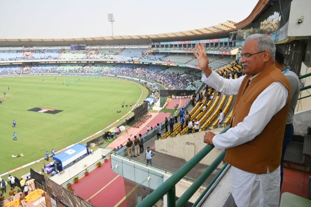 रायपुर – मुख्यमंत्री के साथ राज्यसभा सांसद श्री राजीव शुक्ला और मुख्यमंत्री के सलाहकार श्री प्रदीप शर्मा भी स्टेडियम में मौजूद हैं।