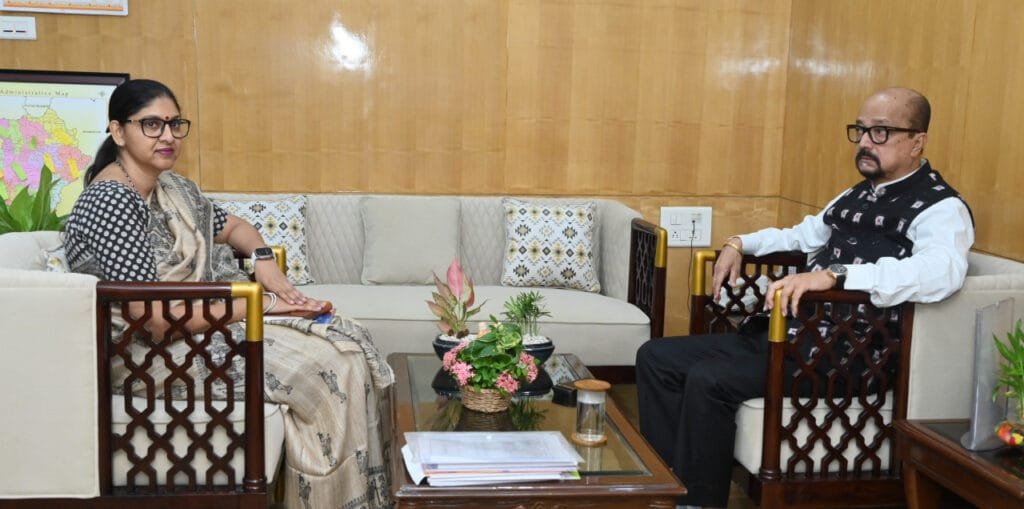 रायपुर : राज्यपाल डेका से खाद्य नागरिक आपूर्ति विभाग के सचिव सुश्री कंगाले ने सौजन्य भेंट की…