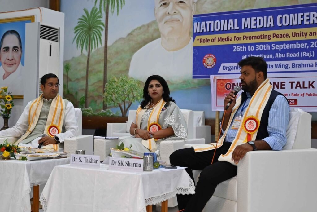 आबू रोड़/28 सितम्बर 2025। ब्रह्माकुमारीज़ द्वारा आयोजित राष्ट्रीय मीडिया कॉन्फ्रेंस का विदाई सत्र के साथ कई सारे सन्देश दे गया। संस्था के अंतरराष्ट्रीय मुख्यालय शांतिवन में 26 सितंबर से चल रहे महासम्मेलन के विदाई सत्र को हिमाचल प्रदेश के तकनीकी शिक्षा मंत्री राजेश धरमानी ने संबोधित किया। उन्होंने पत्रकारों का आह्वान करते हुए कहा कि आज दुनिया के सामने बहुत सारी चुनौतियां हैं, उसका समाधान निकालने के लिए पत्रकारों की जरूरत है। उन्हें आगे आना होगा। मीडिया सूचना प्राप्त करने का एक जरिया है। जो आप बताते हैं, लोग उसे सच मानते हैं। प्रिंट से लेकर आज इलेक्ट्रॉनिक मीडिया डिजिटल मीडिया भी उपलब्ध है। आज जहां सूचना प्राप्त करना आसान हुई है, लेकिन सही सूचना पाना ज्यादा मुश्किल हो गया है। ब्रह्माकुमारीज़ अच्छे सामाजिक कार्य कर रहा है। साधारण व्यक्ति में बदलाव लाने से बड़ा योगदान क्या हो सकता है। लेकिन इसके लिए मुख्य धारा मीडिया में प्राइम टाइम कोई बड़ा कार्यक्रम नहीं दिखाया गया। देश की कई संस्थाएं ऐसे ही अच्छे कार्य कर रही हैं, लेकिन वे प्राइम टाइम से गायब हैं।