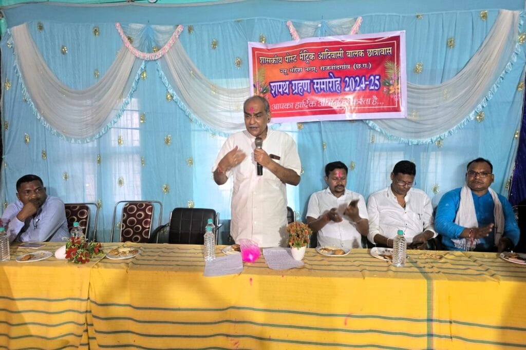 कार्यक्रम की अध्यक्षता नगर निगम राजनांदगांव के नेता प्रतिपक्ष श्री किसुन यदु ने किया। कार्यक्रम में विशेष अतिथि के रूप में सेवानिवृत्त उप पुलिस महानिरीक्षक श्री आरएस नायक एवं श्री डीआर आचला सहित गांेडवाना समाज के पूर्व संभागीय अध्यक्ष श्री जगत सलामे, कार्यक्रम के संयोजक एवं जनसंपर्क अधिकारी जिला बालोद श्री चंद्रेश ठाकुर, छात्रावास एलुमनि के अध्यक्ष श्री अरविन्द गोटे, छात्रावास के भूतपूर्व छात्र श्री पवन तुलावी, श्री रामसिंह मण्डावी, श्री धरमू किरंगे, श्री मन्नेसिंह मण्डावी, श्री रायसिंह कोटपरिया, श्री रोहित घराना, श्री नंदकिशोर धूर्वे, श्री बिट्टू कोमरे, छात्रावास अधीक्षक श्री पुरेन्द्र महिलांगे सहित अन्य अतिथिगण उपस्थित थे। इस अवसर पर मुख्य अतिथि श्री खूबचंद पारख के द्वारा छात्रावास के नवनिर्वाचित अध्यक्ष श्री कैरल्स कोठारी एवं अन्य पदाधिकारियों को शपथ दिलाकर हार्दिक बधाई एवं शुभकामनाएं दी गई।