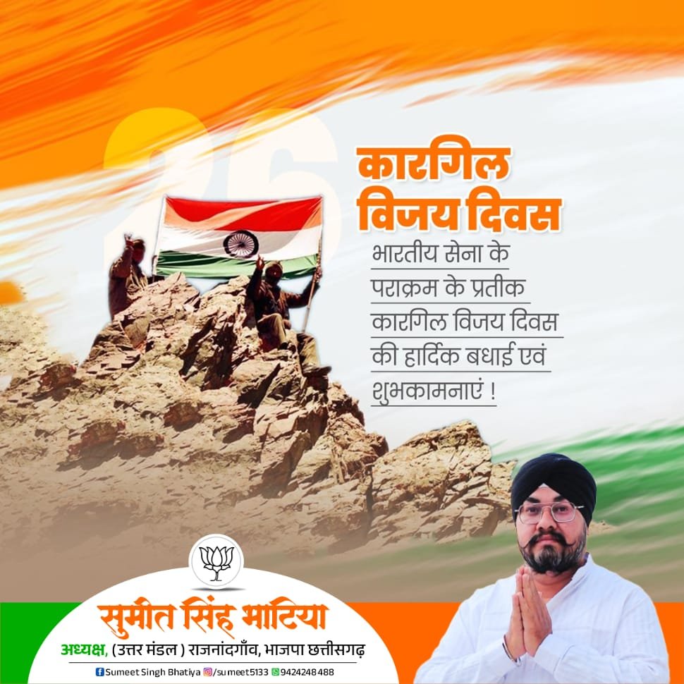 श्री भाटिया ने अपने संदेश में कहा “भारतीय सेना के पराक्रम के प्रतीक ‘कारगिल विजय दिवस’ की हार्दिक शुभकामनाएं। यह दिन हमें उन वीर सपूतों की याद दिलाता है जिन्होंने कारगिल की ऊंची पहाड़ियों पर देश की रक्षा करते हुए अपने प्राण न्यौछावर कर दिए।”
